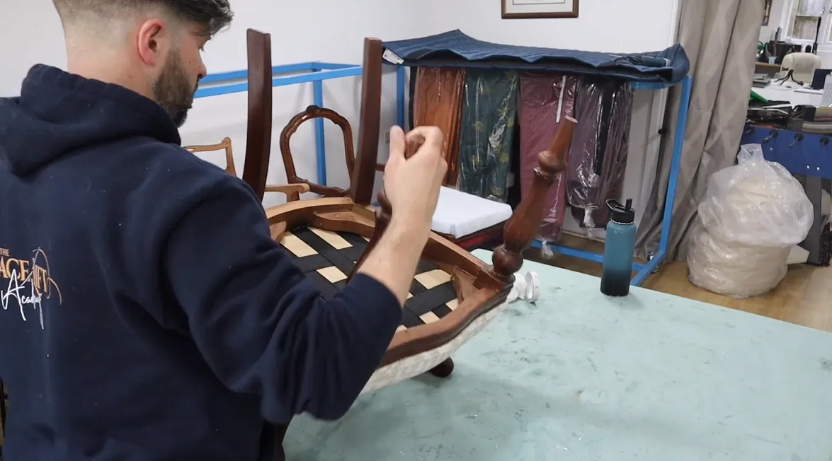 In this module, we walk you through how to fit the collar onto your Fiddle Back chair and then upholster the rest of the seat step by step. You will learn how to make the correct cuts around the rails so the fabric sits smoothly and follows the contours of the chair without bunching or distortion.